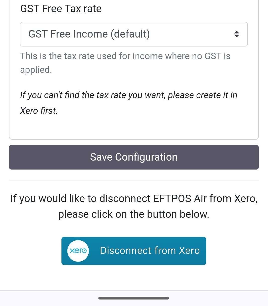 If you wish to disable synchronising data to Xero, you may either disable this via the EFTPOS Air app, Xero interface or close your Xero account.