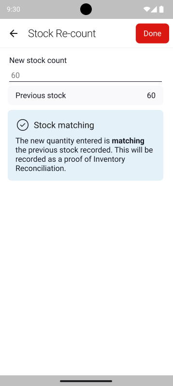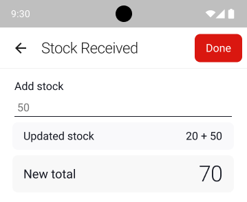 The Stock Received menu prompts you to enter any additional stock that has been added to your inventory. Updating this will indicate the updated stock count.