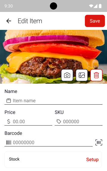 | Barcode | If your items have barcodes you can enter this to make it faster when adding items to your basket. You can tap the barcode icon on the right to simply scan your items barcode rather than entering it numerically. |