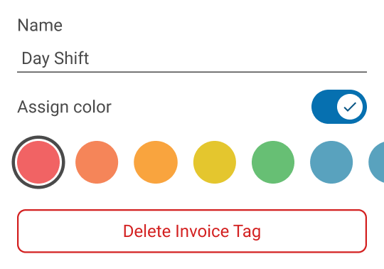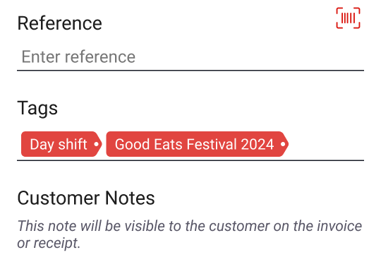 Once a tag has been created, it can be applied by opening an invoice or starting a sale and navigating to the Tags section. From there, type the name of the tag and you will be prompted to tap on existing tags or create a new one by tapping the + button.