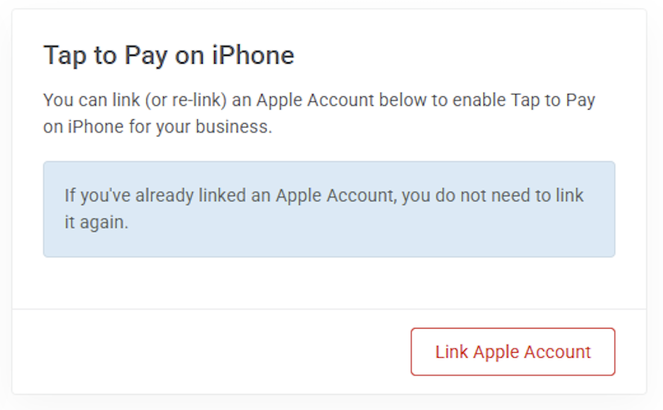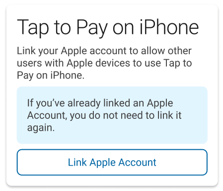 To use Tap to Pay on iPhone, you'll need to accept the Tap to Pay on iPhone Terms & Conditions and link your Apple Account. This process must be done by the business owner before Tap to Pay on iPhone can be used.
