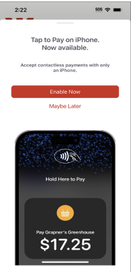 Enabling Tap to Pay on iPhone can take up to 90 seconds as your device downloads your configuration profile.